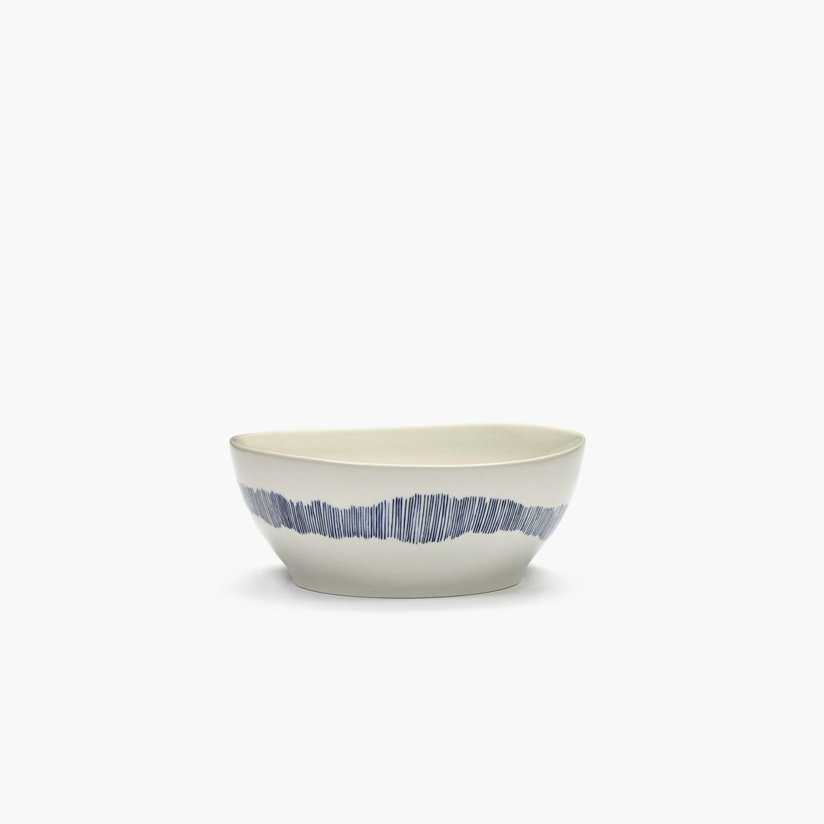 Αυτό το κεραμικό μπολ συνδυάζει παράδοση και καινοτομία. Το απλό σχήμα με τις οργανικές μπλε ρίγες δημιουργεί μια δυναμική αρμονία. Το μπολ αυτό ανήκει στη συλλογή Feast του Ottolenghi.