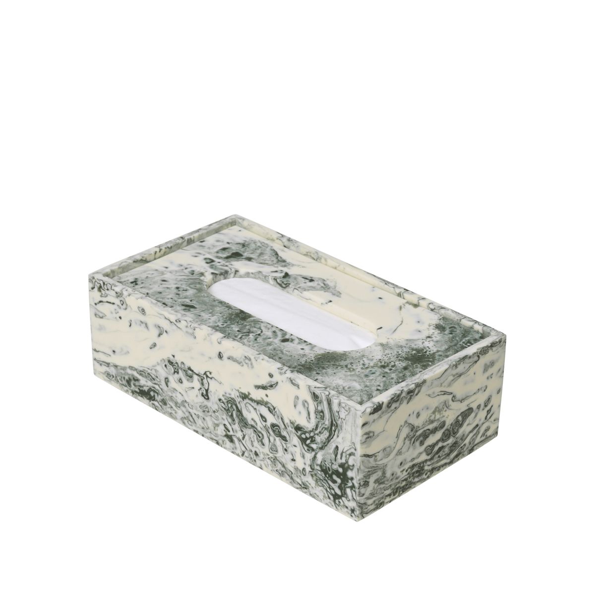 The Mist Tissue Box offers a sleek and practical solution for storing standard-sized tissues. Crafted from marbled resin, it combines enduring durability with a subtle, refined elegance. Rooted in the geometric and minimalist design ethos of the Mist Series, it exudes an honest and effortlessly sophisticated aesthetic.