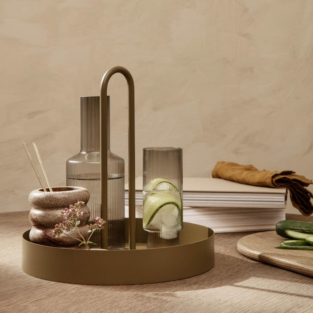 The Grib Tray is a handy solution for your various indoor-outdoor needs. Made from powder-coated metal, the spherical shape is mirrored in its rounded handle, which rests comfortably in your hand when carried. We call it a tray, but the versatile piece fits decoratively anywhere in your home – use it for spices and oils in the kitchen, to organise your office supplies or serve up a freshly made cocktail.