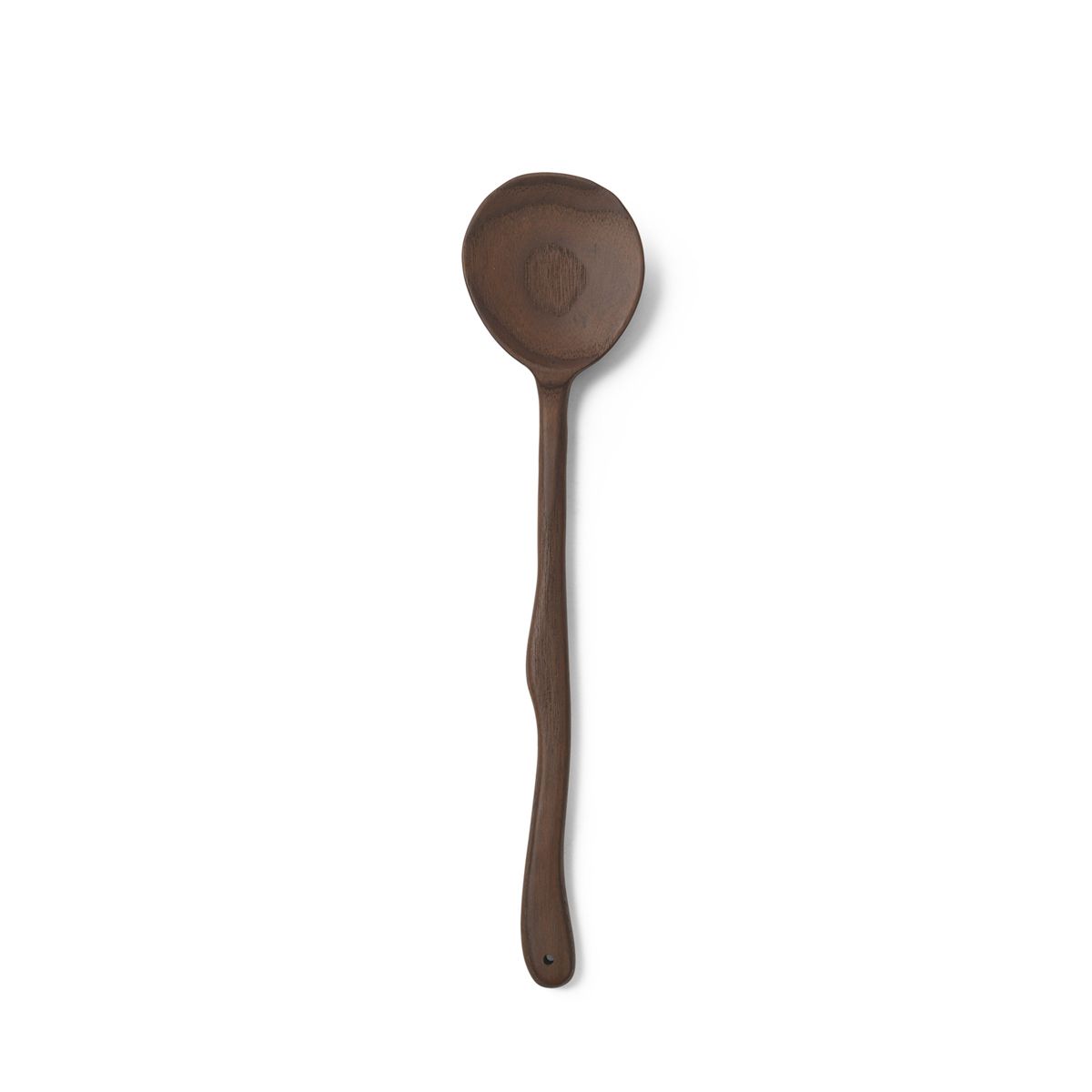 Featuring a fluid, organic shape inspired by meandering rivers and paths found in nature, the Meander Spoon presents an artful addition to any dining situation. Made entirely from carbonised ash wood, the sculpted spoon has visible graining, providing the otherwise simple piece with a subtle, intriguing pattern. Use the Meander Spoon as a functional kitchen tool which can easily be brought into the dining room as a decorative element in your table setting.